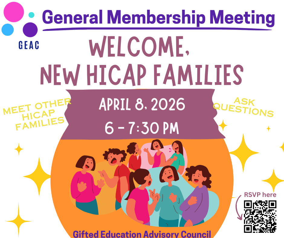 We invite all new and existing families to join us on April 8th from 6 - 7:30 pm for a warm welcome and a chance to connect with other hicap families.